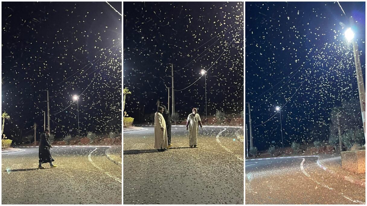 وأكدت جماعة أملن في بلاغ صحفي أن الامر لا يتعلق بأسراب الجراد، بل هي حشرات محلية معتادة، تنجذب إلى مصادر الضوء خلال فترات معينة من السنة.