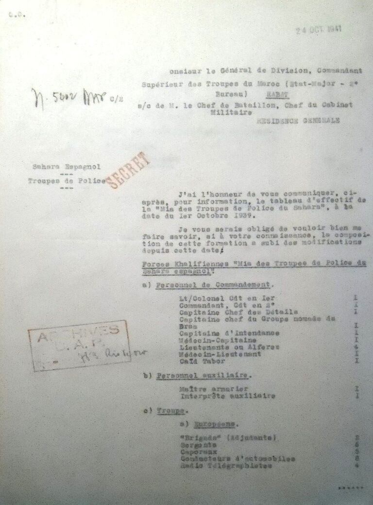 في عام 1937، اتخذت القوات المسلحة المكلفة بالحفاظ على الوجود الإسباني في الصحراء شكلا خاصا. عرفت باسم القوات الخليفية، وتم تنظيمها في وحدات تسمى مجموعات المائة، تتكون كل منها من مائة جندي. لم تكن مجرد ابتكار استعماري، بل استوحي هذا التنظيم العسكري بشكل مباشر من تقاليد الحكومة المغربية، كما يتضح من وثيقة مؤرخة في 24 أكتوبر 1942، للجنرال غيوم، القائد الأعلى للقوات في المغرب، وموجهة إلى قائد المكتب العسكري في الإقامة العامة في الرباط.