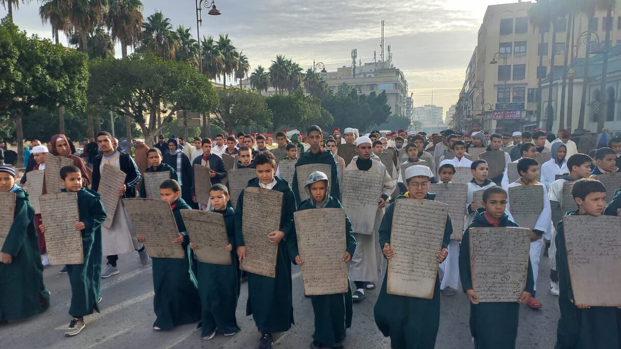 ورفع عشرات من الأطفال وطلبة الكتاتيب القرآنية بعاصمة البوغاز، وفي أياديهم ألواح القرآن على عادة المغاربة، في أجواء روحانية دعواتهم طلبا للغيث والرحمة بأن يجود الله سبحانه وتعالى علينا بهبة السماء بالغيث النافع ويسقينا من كرمه.