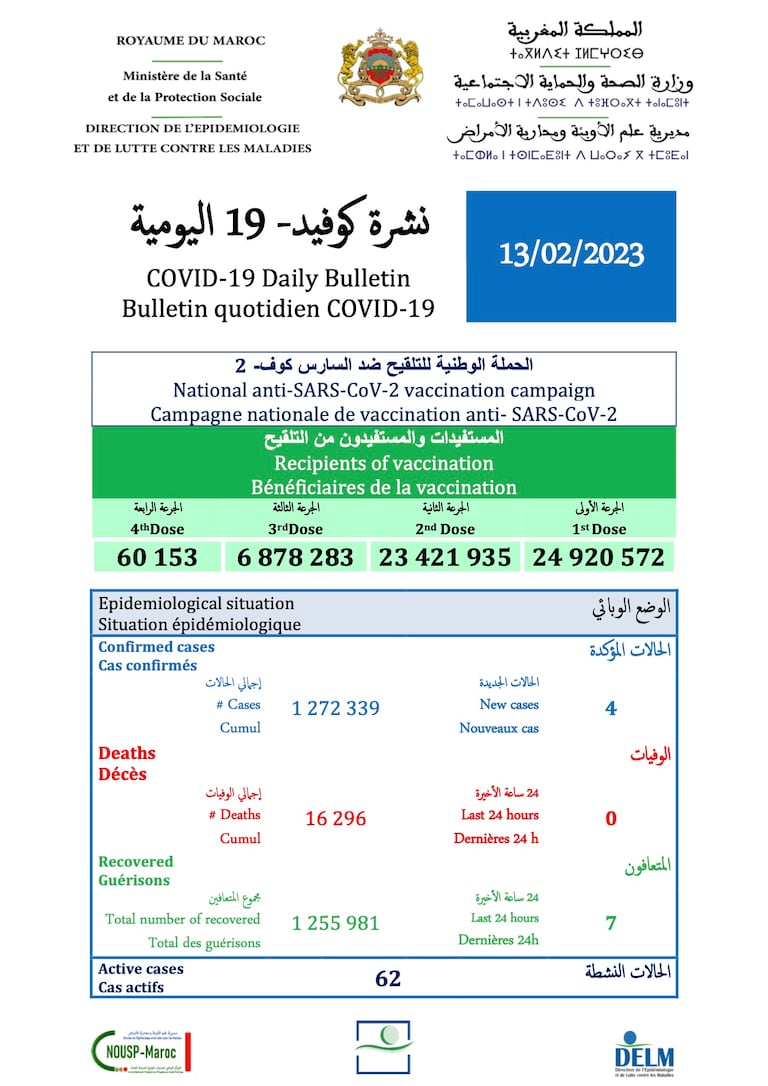 وفي نفس الصدد، أضاف المصدر ذاته أن عدد المستفيدين من الجرعة الأولى من اللقاح بلغ 24.920.572 شخصا، وبلغ عدد المستفيدين من الجرعة الثانية 23.421.935 شخصا، بينما بلغ عدد المستفيدين من الجرعة الثالثة 6.878.283 شخصا، ثم بلغ عدد المستفيدين من الجرعة الرابعة 60.153 شخصا.