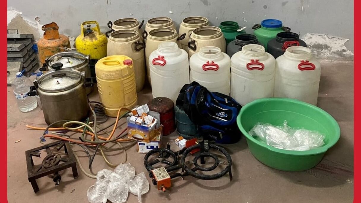 وأسفرت إجراءات التفتيش التي باشرتها الفرقة بمسكن المشتبه فيه عن توقيف مشاركَيْه، وحجز 400 لترا من المواد المخمرة، علاوة على 60 لترا من صافي مسكر ماء الحياة، بالإضافة إلى معدات معمل تقليدي خاص بتقطير المسكر.
