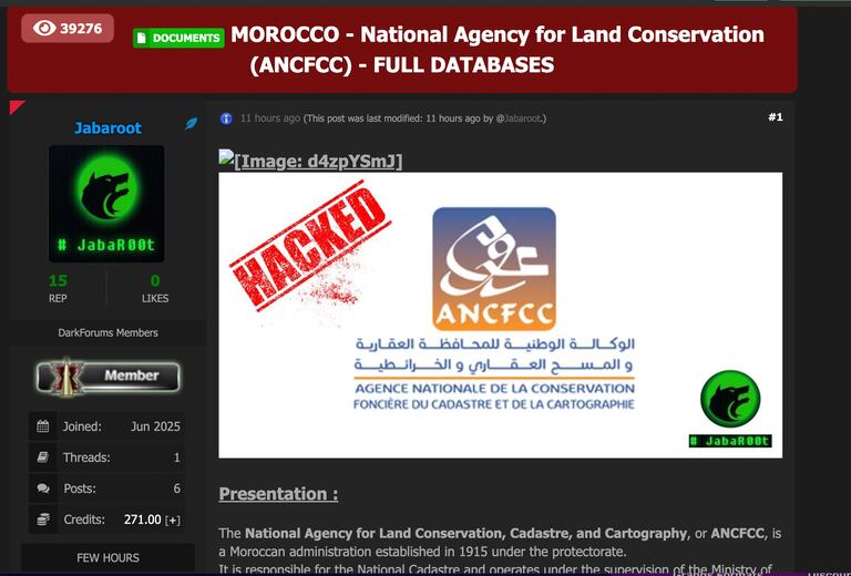 هل تعرضت قاعدة معطيات الوكالة الوطنية للمحافظة العقارية والمسح العقاري والخرائطية للقرصنة؟ يُطرَح هذا السؤال منذ نشر مجموعة وثائق على منصة تيليغرام، يوم الاثنين 2 يونيو، بعد الهجوم السيبراني المزعوم الذي استهدف الوكالة، من قِبل مجموعة هاكرز جزائريين تطلق على نفسها «Jabaroot DZ»، وهي المجموعة نفسها التي أعلنت مسؤوليتها عن الهجوم الذي استهدف قاعدة معطيات الصندوق الوطني للضمان الاجتماعي في شهر أبريل الماضي.