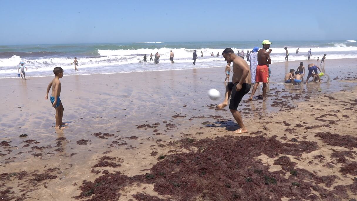 على الرمال المبللة، يلعب أب مع طفليه بالكرة. سفيان الغلبي من الدار البيضاء، وهذه ليست المرة الأولى له في سيدي رحال. يقول مبتسما: « هذه ليست أول عطلة أقضيها مع العائلة هنا. لقد جئت إلى هنا من قبل وكان يجب علي العودة لأنني استمتعت كثيرا ».