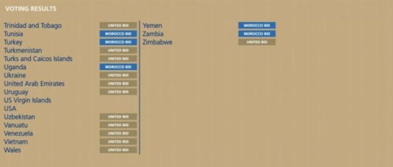 وفي ما يلي هذه قائمة تصويت الدول للملفين: