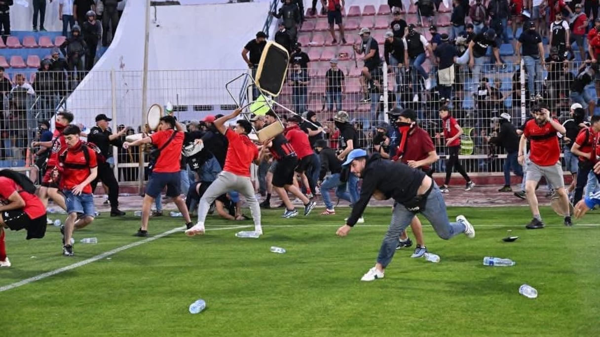 قبل دقائق من صافرة البداية التي كانت مقررة في تمام الساعة الثامنة مساء، انزلق اللقاء نحو الفوضى. فقد اقتحم مشجعون من اتحاد العاصمة أرضية الملعب، في حالة من فقدان السيطرة، مصحوبة باستفزازات ورشق للمقذوفات. مشهد سريالي يجسد أسوأ انحرافات كرة القدم القارية، وضع المباراة فورا في مهب الشك، مما أدى إلى تأخير انطلاقها لمدة ساعة وعشرين دقيقة، حتى استعادة حد أدنى من التنظيم.