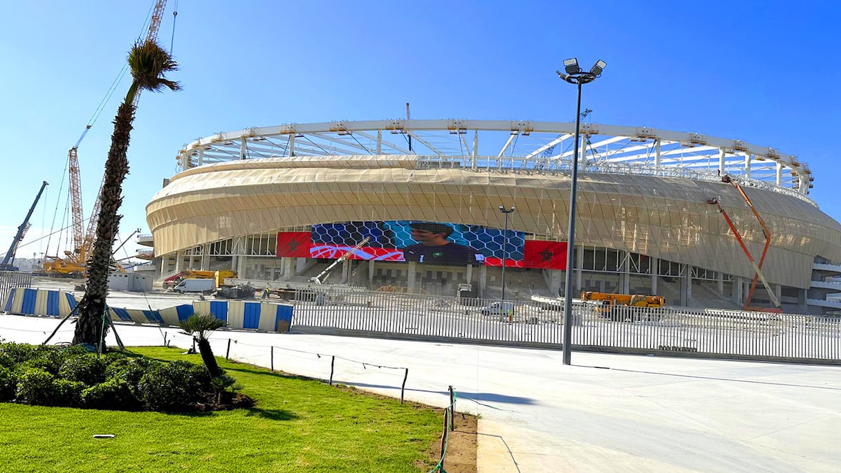 تجريب شاشات عملاقة بملعب طنجة الكبير بإعادة بث مباراة المغرب وإسبانيا في مونديال قطر