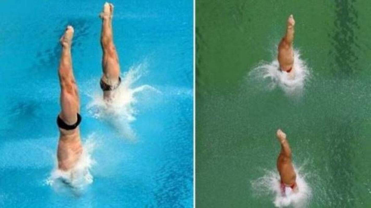 وقام بطل السباحة البريطاني توم دالاي، على "تويتر" بالتساؤل عما حدث أتبعه بصورة لحوضي السباحة الأزرق والأخضر، فيما علق أحد المتابعين قائلا "هل يوجد أحد ما تبول في المياه؟."