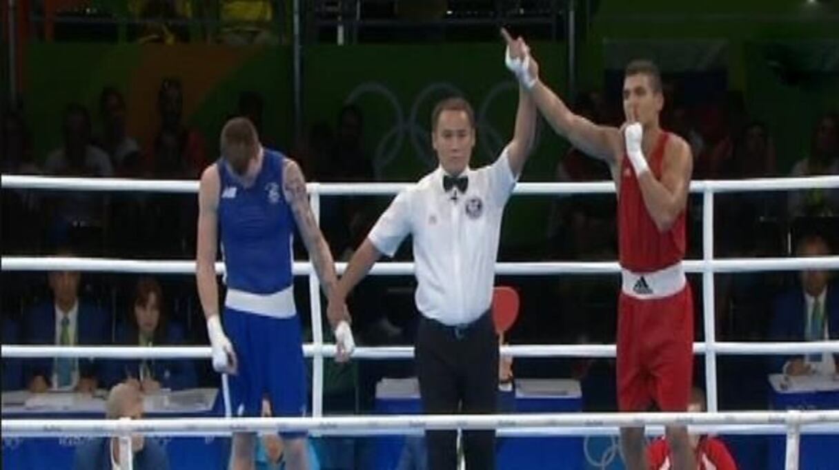وتفوق الملاكم المغربي على الإيرلندي سيفن دونلي بالفوز في الجولات الثلاث.