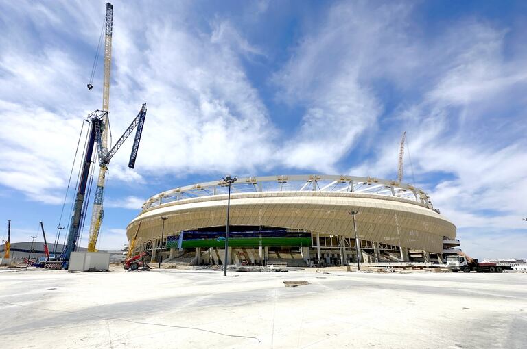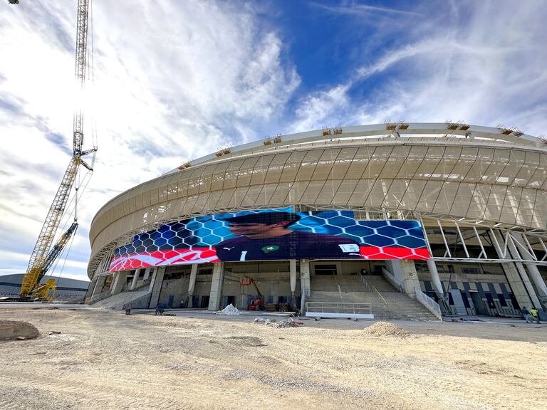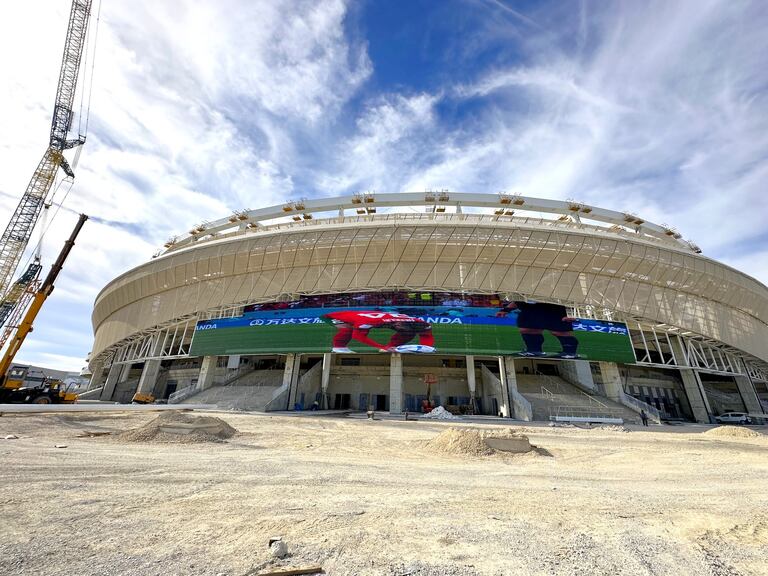 تجريب شاشات عملاقة بملعب طنجة الكبير بإعادة بث مباراة المغرب وإسبانيا في مونديال قطر