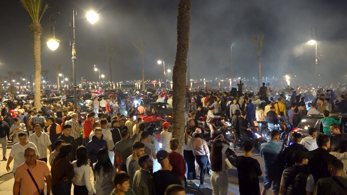 وغصت الشوارع بالمئات من الشبان والأطفال والنساء، حيث التقط البعض صورا ومقاطع فيديو للشهب الاصطناعية على طول الكورنيش، محتفين بالانتصار الكبير الذي حققه أشبال المدرب محمد وهبي، ليكتبوا صفحة جديدة في تاريخ كرة القدم المغربية.