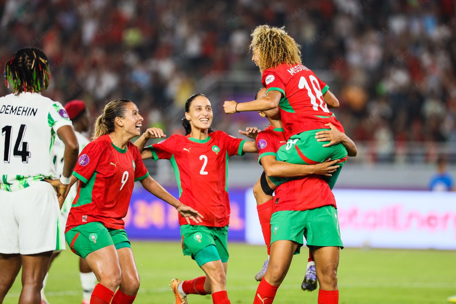 وقال الملك «وإننا لنقدر، بكل اعتزاز، هذا التتويج القاري، الثاني من نوعه لفريقكن، والذي ينضاف إلى قائمة الإنجازات المشرفة لكرة القدم المغربية قاريا ودوليا، منوهين بجهود كل من ساهم في الظفر بهذه البطولة من لاعبات ومدربين وطاقم تقني وطبي ومسيرين إداريين».