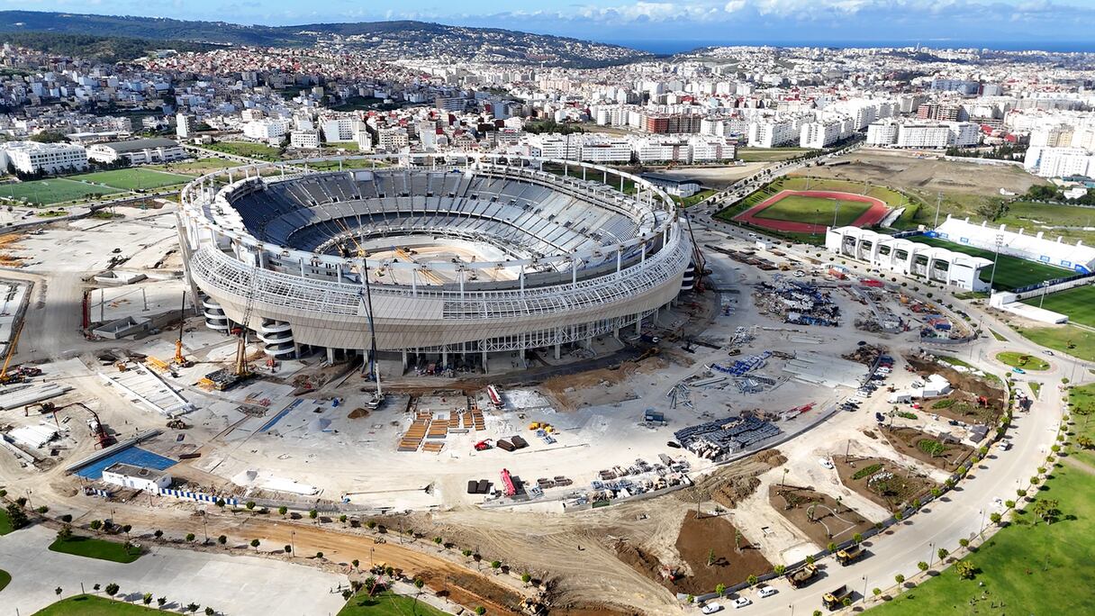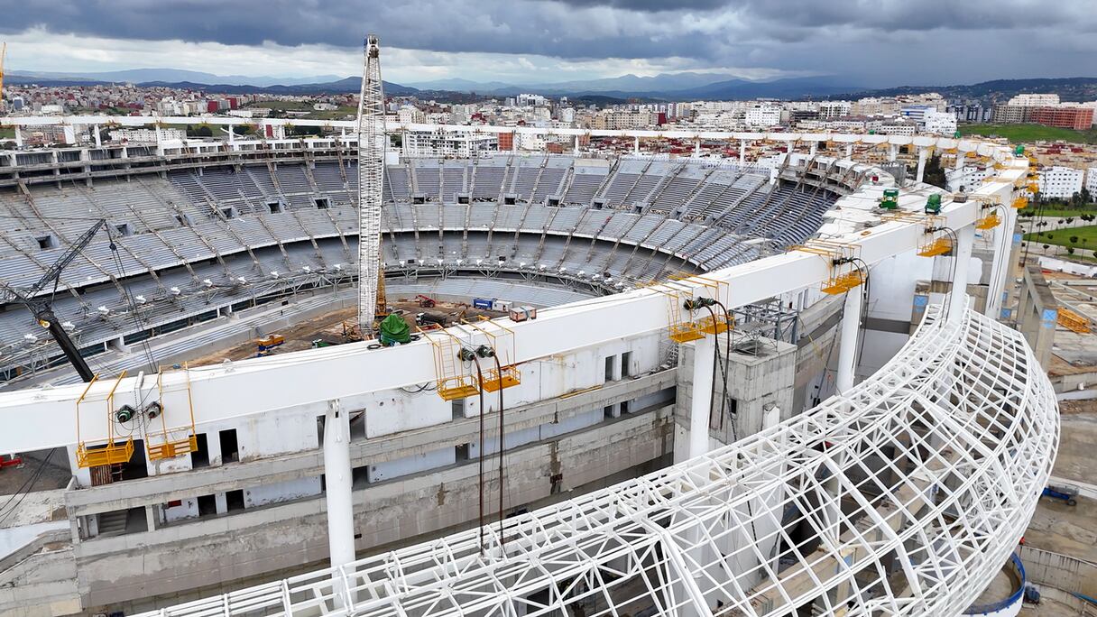 وتمت بنجاح، منذ أيام، عملية رفع هذه الكابلات بواسطة آلات الجر والقطر التي جرى تركيبها من قبل مهندسين مغاربة، والتي تطلبت استعمال تقنيات عالية الدقة عبر نحو 120 آلة جر بأعمدة فولاذية بسقف الملعب، وهي الآلات التي تشتغل كأسطوانة هيدروليكية، حيث أنجزت عملية الجر في آن واحد، بعد تتبيث الحلقة الخارجية بالعوارض الفولاذية التي يصل مداها لأزيد من 85 مترا، وجميعها من صنع مغربي ومن إنتاج ثلاثة مصانع تتواجد بالدار البيضاء.